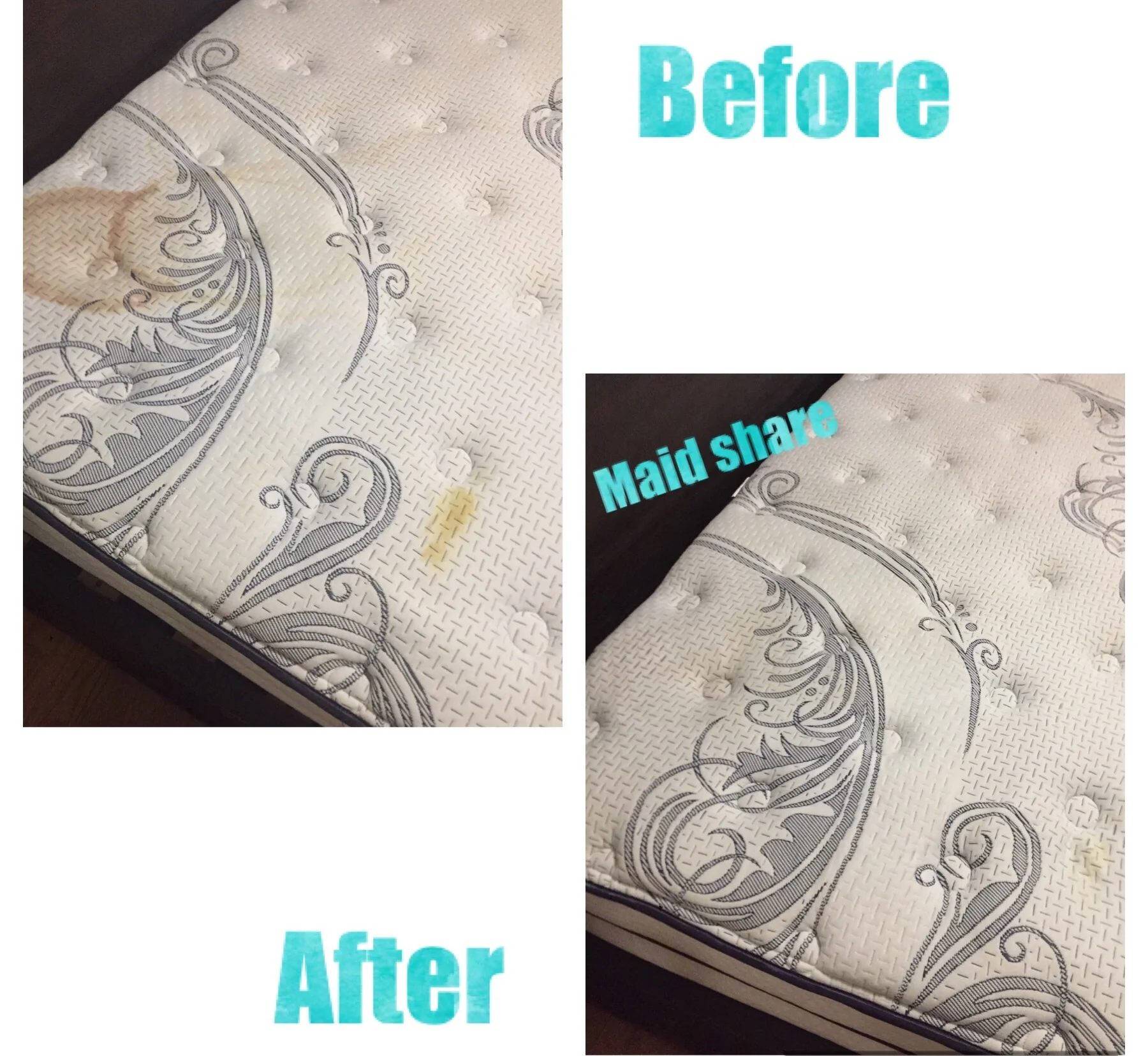 Maid Share uses Steam to clean not only remove stains but to also sanitize your mattress. For a Eco friendly, all natural green cleanng